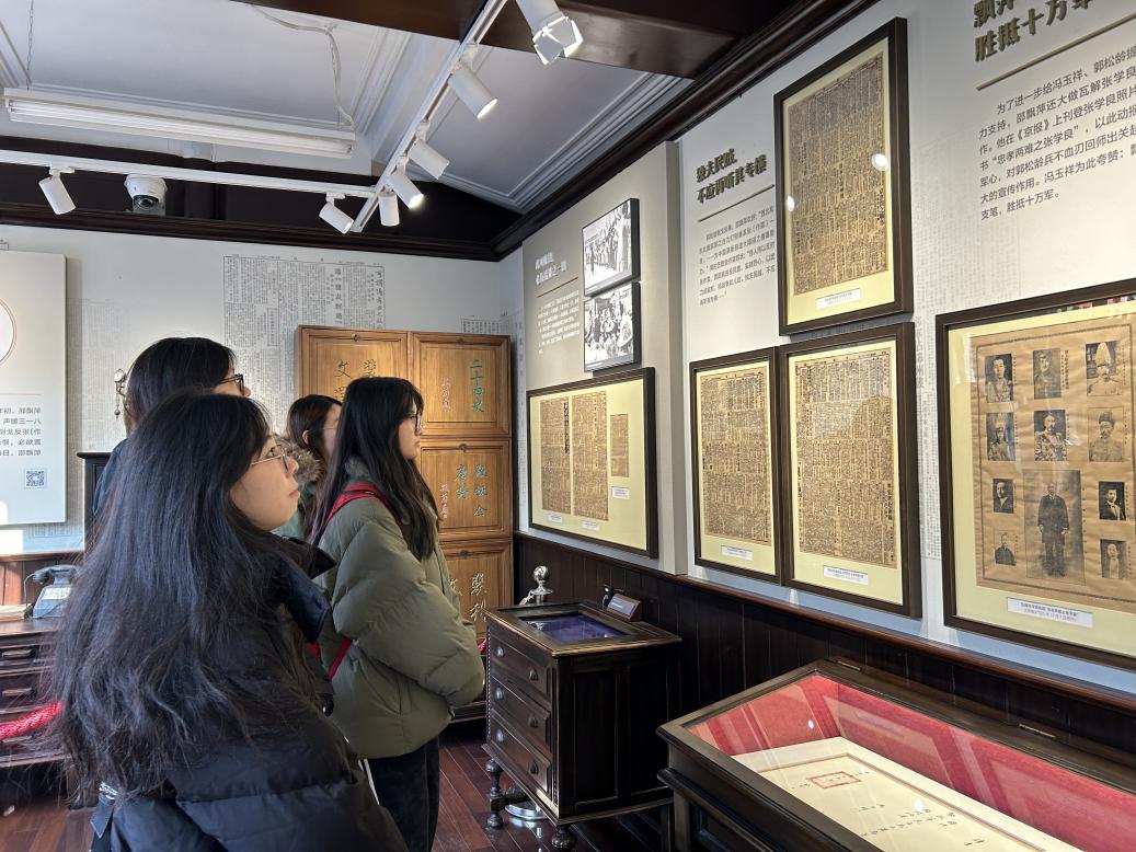 京报馆作为早期传播马克思主义的重要前哨,见证了著名报人邵飘萍“铁肩担道义,妙手著文章”的革命情怀,更承载着中国近代新闻事业的红色记忆。师生一行沉浸式参观学习,通过珍贵的历史文献、实物展品和场景复原,系统了解了《京报》的创办历程及其在不同历史阶段的重要作用。
