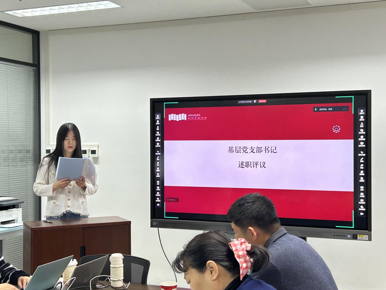 随后,各教工、学生党支部书记依次进行述职。各支部书记紧扣履职情况,围绕政治理论学习、组织建设、党员教育管理、党建与业务融合、存在的问题及改进方向等方面进行详细汇报,全面梳理2025年度支部工作的成效与不足。每一位支部书记述职结束后,薛红霞书均进行逐一点评,肯定各支部在党建工作中的特色做法和显著成效,也指出存在的短板弱项,结合支部实际提出针对性的改进意见和工作要求。面对点评意见,各支部书记逐一表态,将以此次评议为契机,认真梳理问题、细化整改措施,切实把整改成效体现在支部建设的各项工作中。