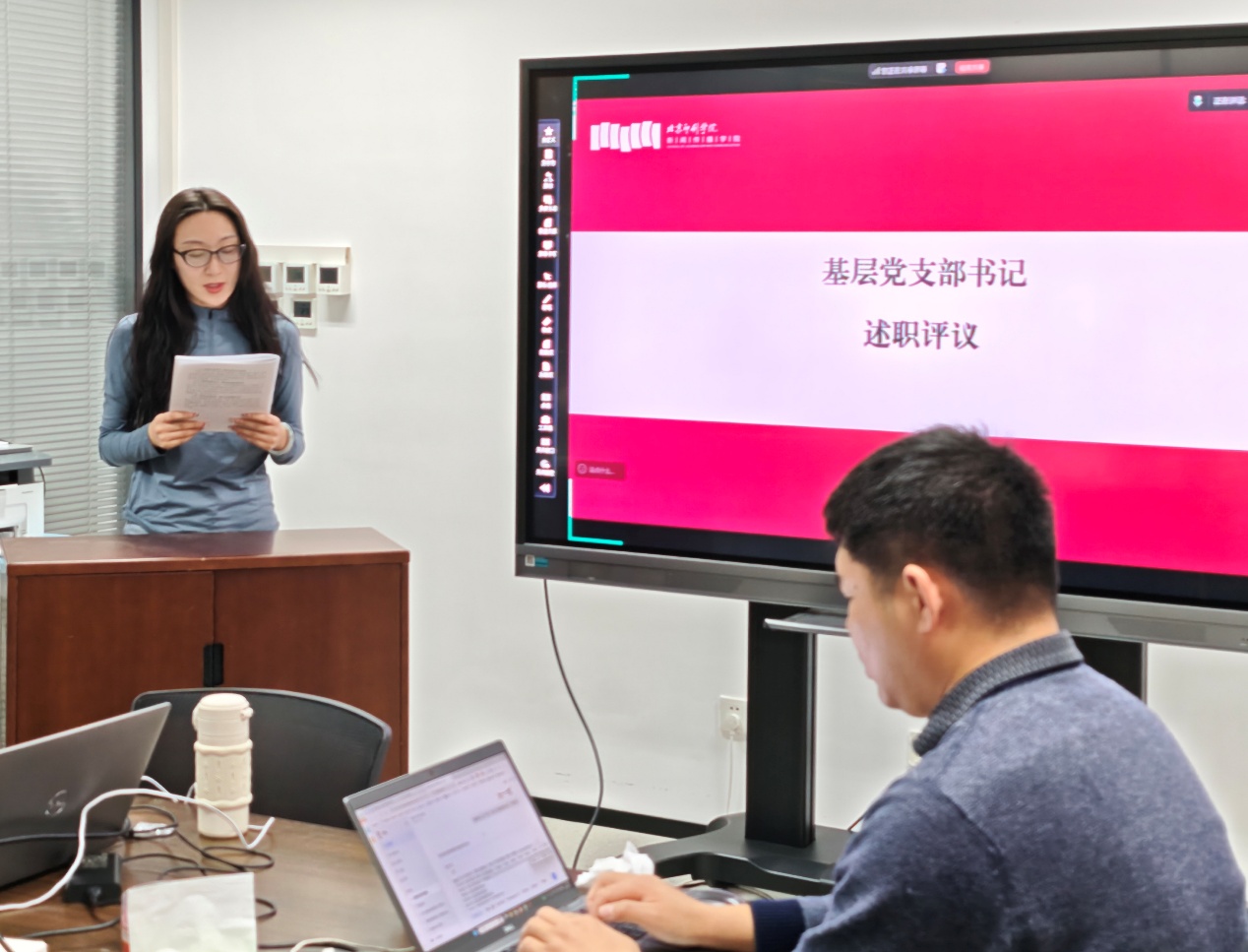 会议伊始,薛红霞详细介绍本次述职评议考核会议的筹备情况、具体议程安排,并对述职和评议工作提出明确要求。她强调,党支部书记述职评议考核是强化基层党组织政治功能、提升组织力的重要举措,既是对2025年度学院党建工作的全面复盘,也是压实党建责任、推动支部建设提质增效的有力抓手。全体参会人员要提高政治站位,坚持问题导向,客观公正评价,切实把述职评议的过程转化为锤炼党性、改进工作的过程。