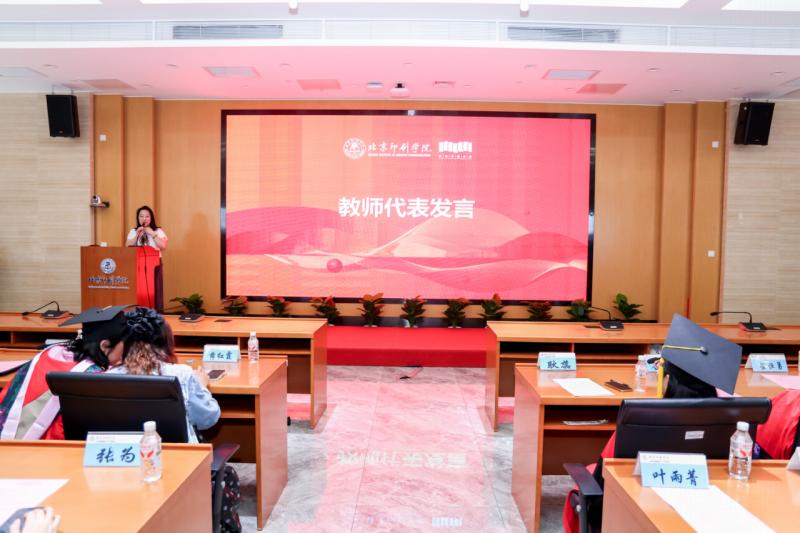 教师代表袁雪老师分享了其深耕行业的深刻体悟。她殷切寄语毕业生们在“流量为王”的时代洪流中,要坚守清醒的视角与独立的判断;在漫长的工作历程中,不忘守护内心的本真;纵使身处日新月异的科技怀抱,更要始终谨记人文关怀的永恒价值。