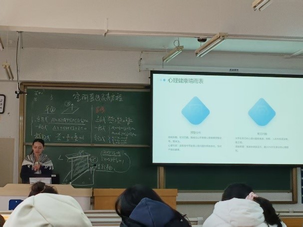 本次班会也关注到学生的心理健康问题。班主任向学生们分享了目前大学生常见心理问题,通过让学生识别常见心理问题,尽早重视心理问题,进行自我调节。鼓励学生们积极参与课外活动与社团,保持健康的生活方式来调节心理压力。此外,还向学生推荐了校内心理咨询服务及心理援助热线,鼓励学生遇到困扰时主动寻求帮助。