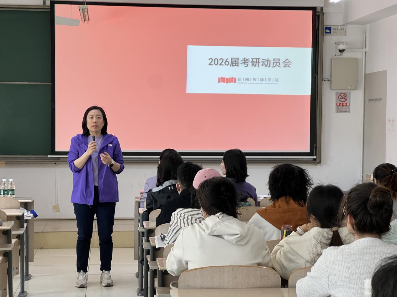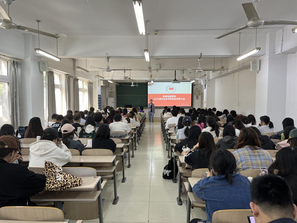 为助力2026届本科毕业生明晰考研与就业方向,激发学习与求职热情,4月24日上午,新闻传播学院在康庄校区举行2026届毕业生考研就业动员大会,新闻传播学院学工组长、就业辅导员张燕玲主持。