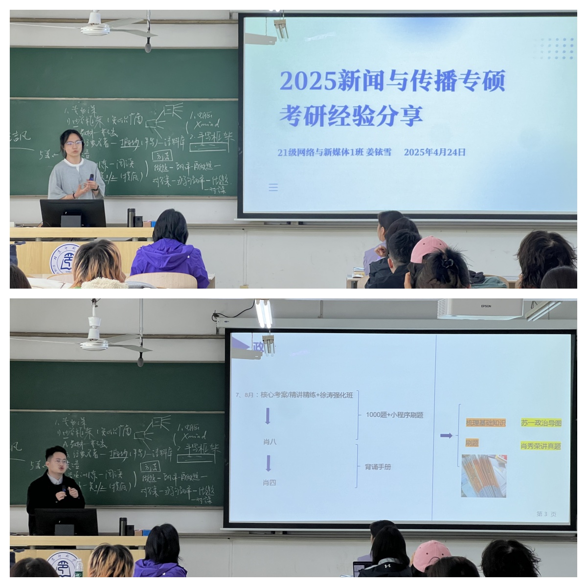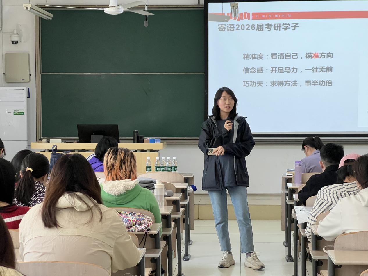 新闻传播学院2021级学生姜铱雪、赵阳两位同学从自身经历出发,分享考研经验,鼓励同学们选择适合自己的方法进行备考。