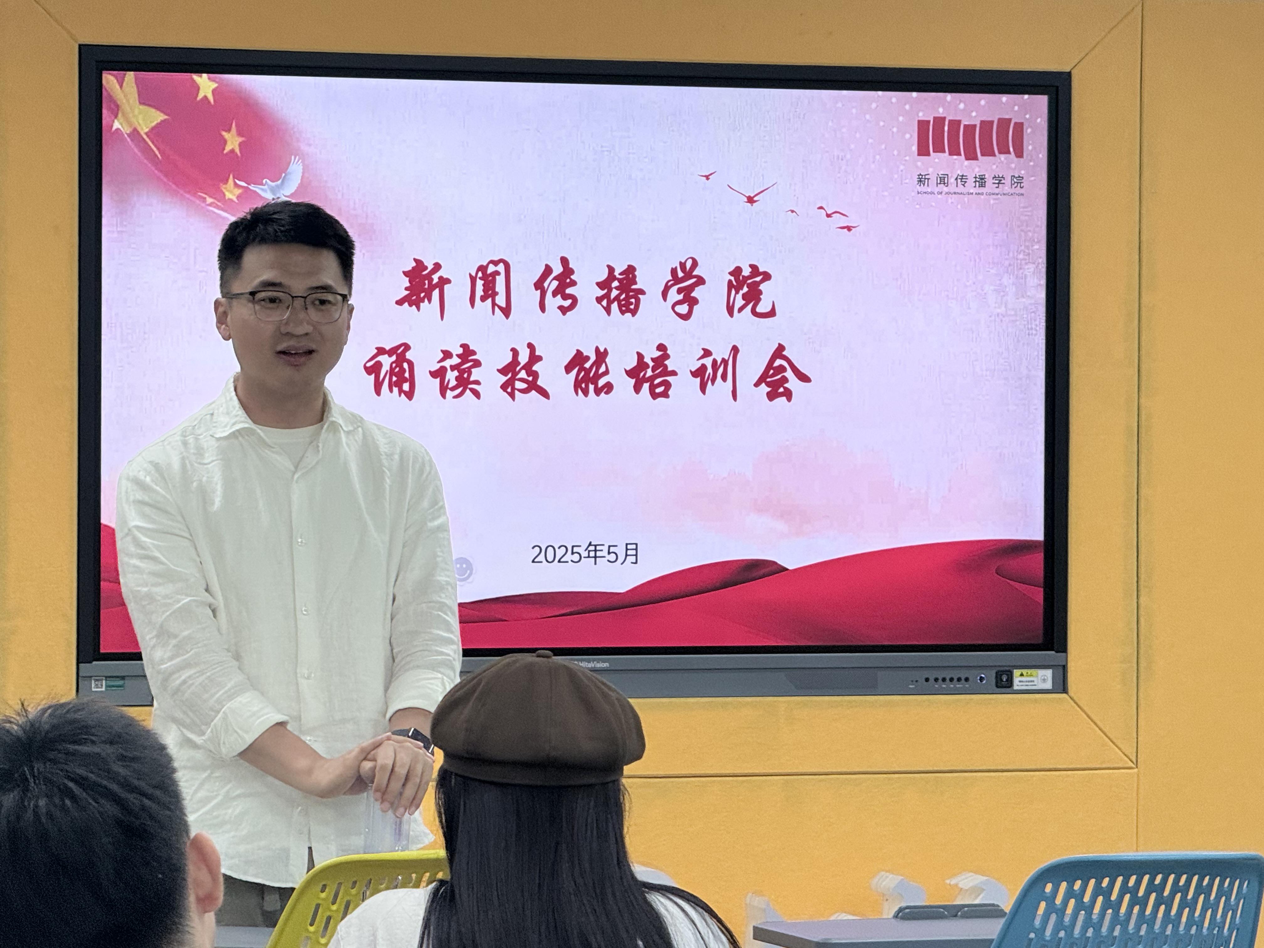 5月6日,新闻传播学院邀请沧州师范学院教师武峻为第三届中华经典诵读会各团队进行诵读技能培训,以提升青年学子诵读技巧,扩大“以文化人、以诵育人”价值功能,传承发展中华优秀语言文化。活动由学院分团委书记魏兰雅主持,专业教师王颖倩出席。