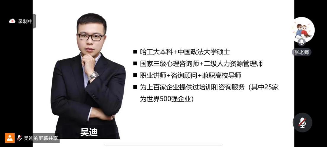吴迪老师首先对当前严峻的就业形势进行了分析,讲述了具体的就业现状,并提出多种方案供同学们参考。针对春招这一关键节点,吴迪老师深入剖析了春招与秋招的不同特点,并分享了五个在春招求职中的技巧,希望同学们抓住春招合适的就业机会,勇敢踏入职业征程。针对考研复试和公务员面试,吴迪老师还详细讲解了复试和面试的基本流程、实用技巧以及可能会提问到的经典问题。他希望同学们能够做好多手准备,努力发挥自身优势,取得预期结果。