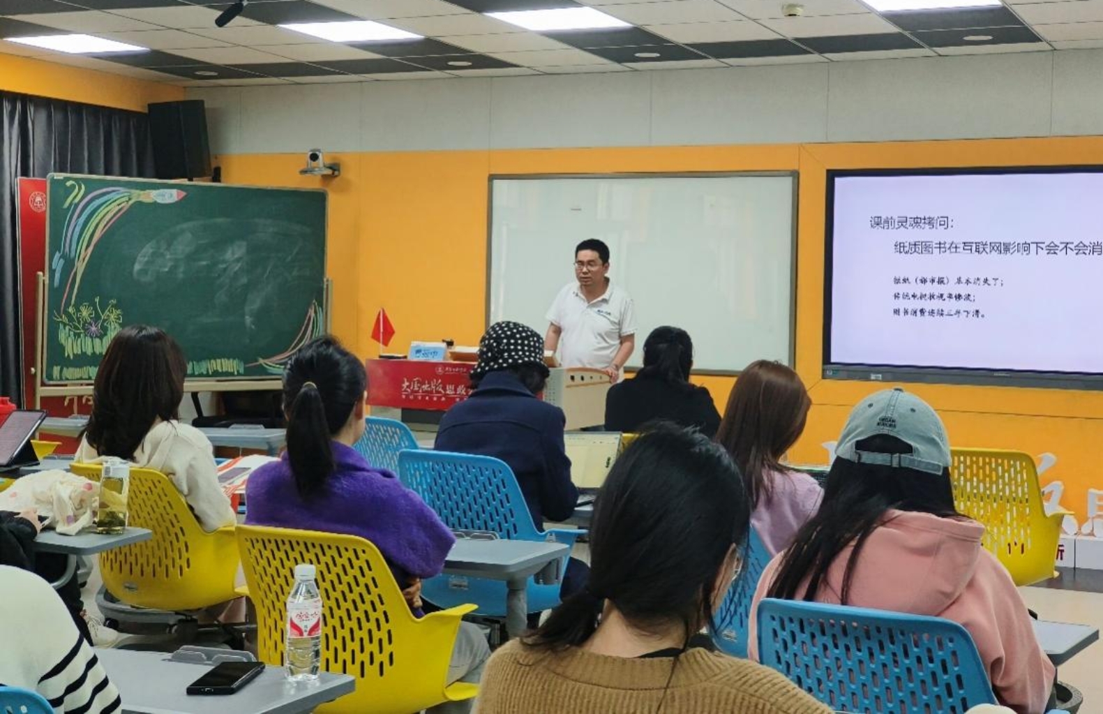 北京天域北斗文化科技集团有限公司副总裁,我院2002级本科生、2006级研究生校友曹振中作为首期论坛主讲人应邀出席。曹振中作“编辑基础素养”主题报告,结合自身学习工作实践,从中国出版机构结构和分布两方面详细介绍国有出版机构和民营出版机构的数量、类型及特点,深入分析当前出版行业出现的重复出版问题以及编辑应具备的核心素养。曹振中勉励在座学生立足专业、好好读书,广泛涉猎各学科专业知识,用真才实学拼搏出属于自己的光明未来。
