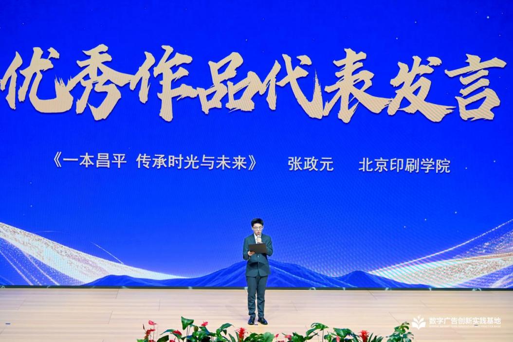 在公益广告类评选中,2025级广告学本科生张政元的作品《一本昌平 传承时光与未来》荣获“典范作品奖”。该作品以书册为叙事载体,融合动态视觉与AI生成技术,生动勾勒出昌平区历史文脉与未来愿景,获得评审高度评价。